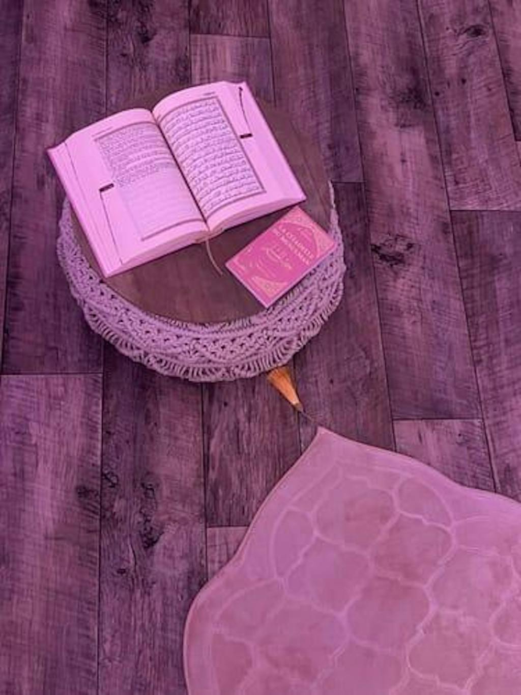 De Edele Koran lichtroze goud en de Franse vertaling van de betekenissen - suède hardcover