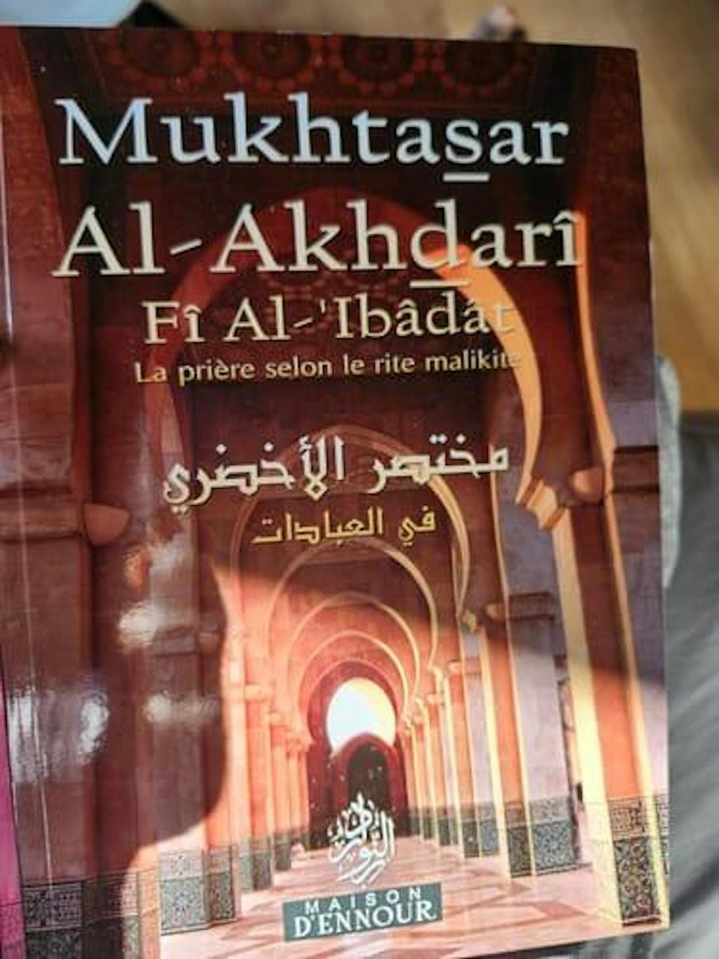 Mukhtasar Al Akhdarî Fî Al- 'Ibâdât ( مختصر الأخضري في العبادات ): La prière selon le rite Malikite, Bilingue (Français-Arabe) est un ouvrage publié par Éditions Ennour qui aborde une méthode progressive pour maîtriser la langue du Coran.